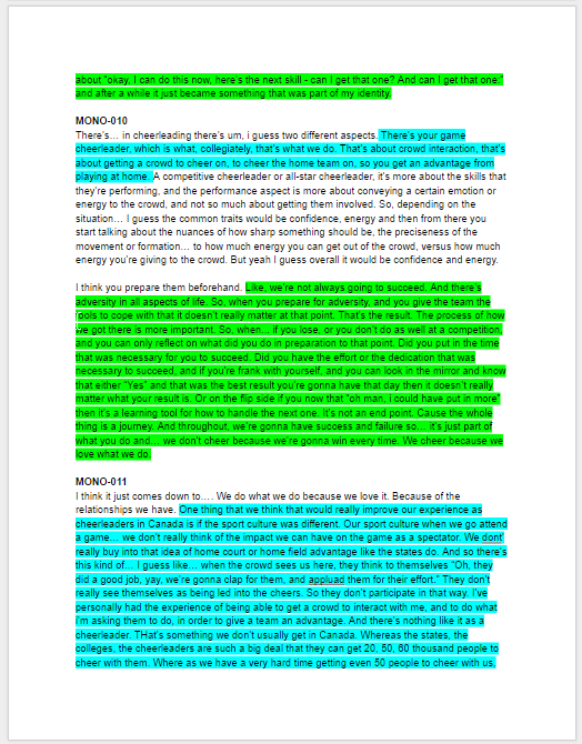 My main role in post production was to sort through the interview. With over 40 minutes of interview recorded, I transcribed it and colour coded it to pick out common themes.